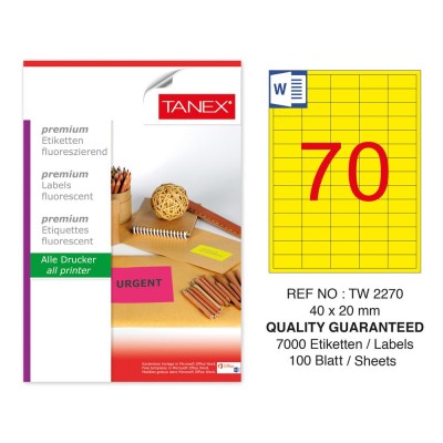 Tanex TW-2270 40x20mm Sarı Floresan Laser Etiket 100 Lü