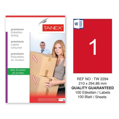 Tanex TW-2294 210x294,86mm Kırmızı Pastel Laser Etiket 100 Lü