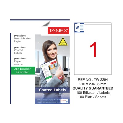 Tanex TW-2294 210x294.86mm Kuşe Lazer Etiket 100 Lü Paket Özellikleri,