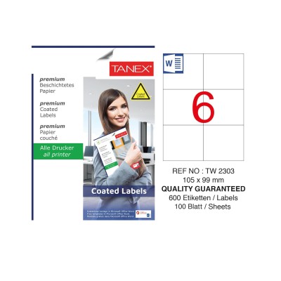 Tanex TW-2303 105x99mm Kuşe Lazer Etiket 100 Lü Paket