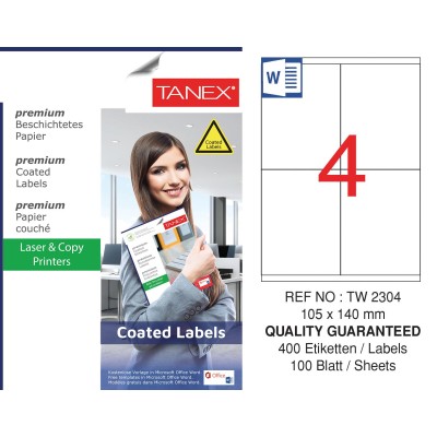 Tanex TW-2304 105x140mm Kuşe Lazer Etiket 100 Lü Paket Özellikleri,