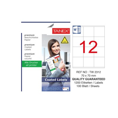 Tanex TW-2312 70x70mm Kuşe Lazer Etiket 100 Lü Paket