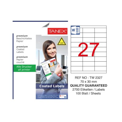Tanex TW-2327 70x30mm Kuşe Lazer Etiket 100 Lü Paket