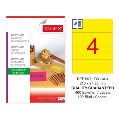 Tanex TW-2404 210x74,25mm Sarı Floresan Laser Etiket 100 Lü