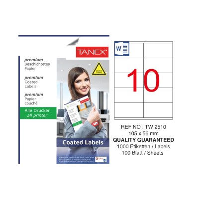 Tanex TW-2510 105x56mm Kuşe Lazer Etiket 100 Lü Paket