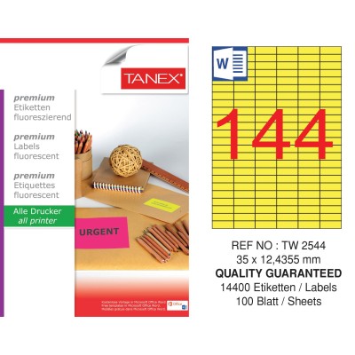 Tanex TW-2544 35x12,4355 mm Sarı Floresan Laser Etiket 100 Lü