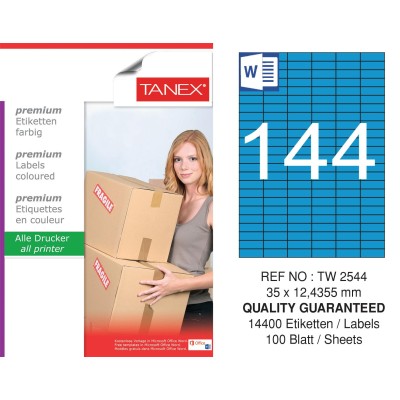 Tanex TW-2544 35x12.4355mm Mavi Pastel Laser Etiket 100 Lü Veriler,