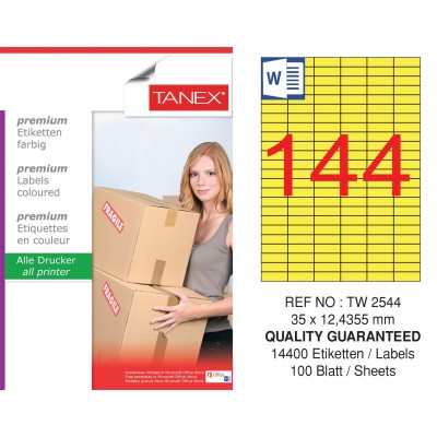 Tanex TW-2544 35x12.4355mm Sarı Pastel Laser Etiket 100 Lü Veriler,