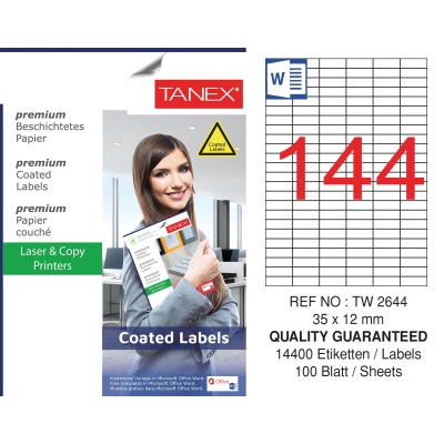 Tanex TW-2644 35x12mm Kuşe Lazer Etiket 100 Lü Paket Özellikleri,