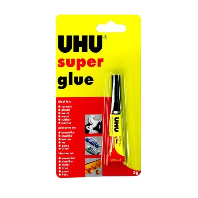 UHU Super Glue plastik metal kauçuk porselen seramik ve ahşap v b Materyalleri saniyeler içinde yapıştırabilen - tamiratlar için ideal süper güçlü bir yapıştırıcıdır - Sadece birkaç damlası istenilen güçlü ve hızlı yapıştırmayı sağlar.